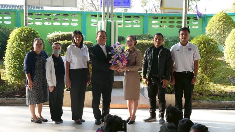 นายอรรถพงษ์ พลนิกร ผู้อำนวยการโรงเรียน พร้อมด้วยคณะผู้บริหาร คณะครู บุคลากร และนักเรียน ร่วมกันแสดงความยินดีกับ นางณัฐิยา พูลทอง เนื่องในโอกาสดำรงตำแหน่ง รองผู้อำนวยการสถานศึกษา