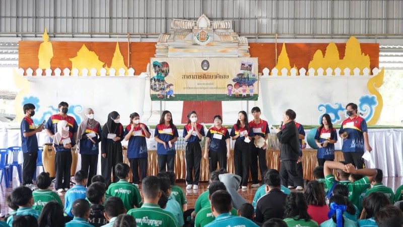 ทั้งนี้ นายอรรถพงษ์ พลนิกร ผู้อำนวยการโรงเรียน พร้อมด้วยคณะผู้บริหาร ตัวแทนครู และนักเรียน ให้การต้อนรับ พร้อมเข้าร่วมกิจกรรม รวมกว่า 90 ราย อย่างสนุกสนาน ณ อาคารอเนกประสงค์ 2 และบริเวณโดยรอบสนามกีฬา (ภาพ: ครูนันทพล/ คัดเลือกภาพ-ออกแบบ: ครูธัญทิพ/ ข่าว-เผยแพร่: ครูศิริวดี)