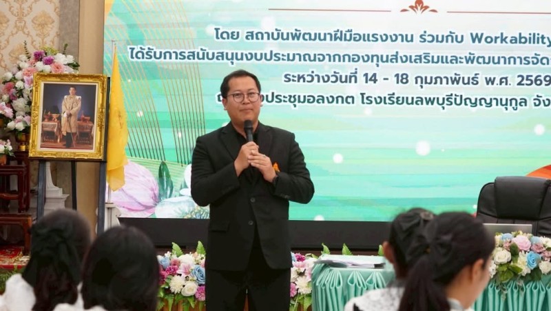 โอกาสนี้ นายพงศ์พันธ์ุ ตั้งกิจ ผู้อำนวยการสำนักงานพัฒนาฝีมือแรงงานลพบุรี ได้ให้เกียรติเป็นประธานในพิธีเปิด เมื่อวันที่ 17 กุมภาพันธ์ 2569 โดยมีนายอรรถพงษ์ พลนิกร ผู้อำนวยการโรงเรียน กล่าวรายงานวัตถุประสงค์ พร้อมทั้งให้เกียรติเป็นประธานในพิธีปิด และมอบเกียรติบัตรแก่ผู้เข้าร่วมการอบรม ในวันที่ 18 กุมภาพันธ์ 2569 ณ ห้องประชุมอลงกต โรงเรียนลพบุรีปัญญานุกูล จังหวัดลพบุรี (ภาพ: ครูวีระพงษ์, ครูเวทางค์, ครูณัติฐิพงษ์, ครูจักรภัทร/ คัดเลือกภาพ-ออกแบบ: ครูสุจิรา/ ข่าว-ออกแบบ: ครูศิริวดี)