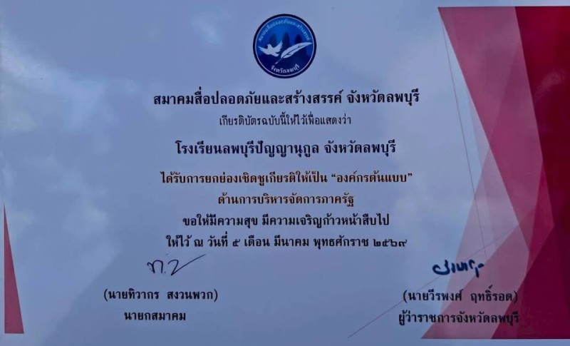 วันที่ 5 มีนาคม 2569 นายอรรถพงษ์ พลนิกร ผู้อำนวยการโรงเรียน มอบหมายให้ นางสาวณัฐิยา คีรีทวีป รองผู้อำนวยการฝ่ายบริหารงานทั่วไป พร้แมด้วยครูศิริวดี เชิมชัยภูมิ เข้าร่วมพิธีรับมอบเกียรติบัตรยกย่องเชิดชูเกียรติ "องค์กรต้นแบบ" ด้านการบริหารจัดการภาครัฐ เนื่องในวันนักข่าวหรือวันสื่อสารมวลชนแห่งชาติ ประจำปี 2569 จากสมาคมสื่อปลอดภัยและสร้างสรรค์ จังหวัดลพบุรี โดยนายวีรพงศ์ ฤทธิ์รอด ผู้ว่าราชการจังหวัดลพบุรี มอบหมายให้ นายเจตน์พงศ์ โชคสวัสดิ์วรกุล นายอำเภอบ้านหมี่ เป็นประธานในพิธีมอบ ณ ห้องลีลาวดี อุทยานบัวหลวง จังหวัดลพบุรี (ภาพ: ครูทิวากร/ คัดเลือกภาพ-ออกแบบ: ครูวรรณพร/ ข่าว-เผยแพร่: ครูศิริวดี)